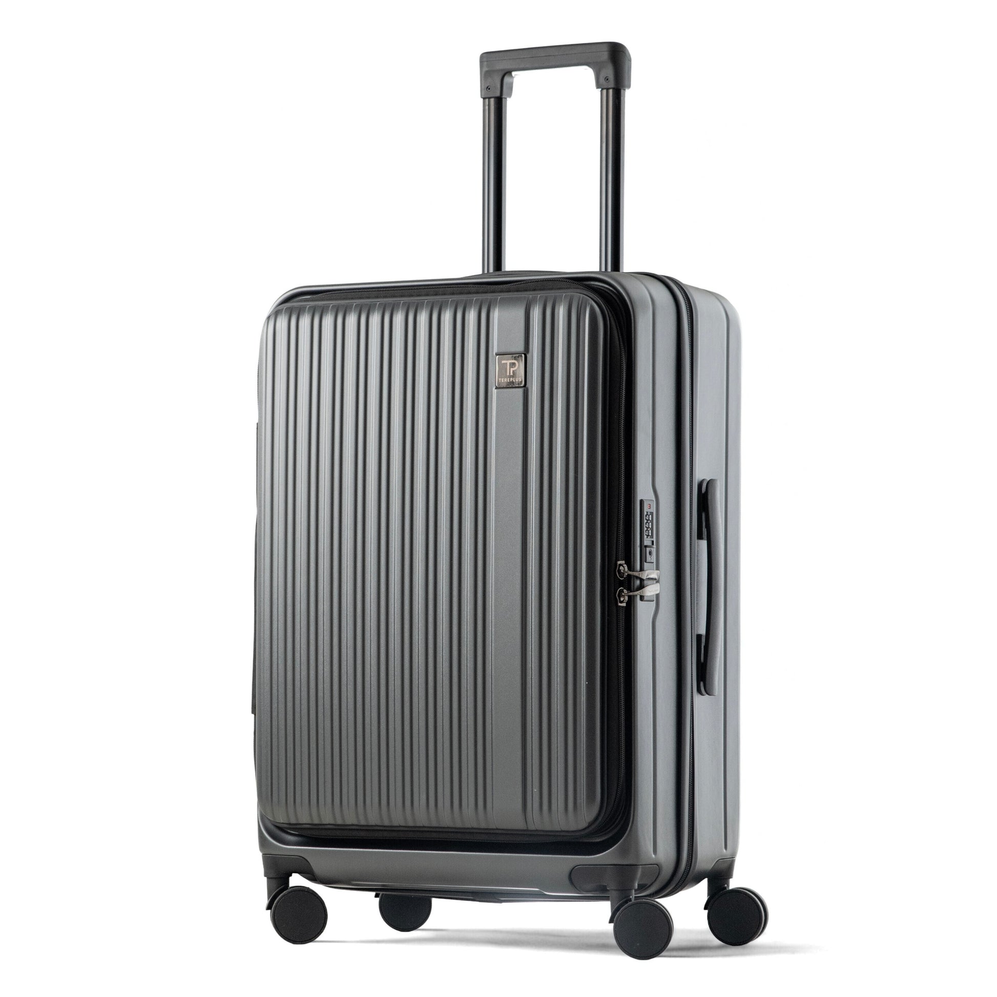 حقيبة سفر محمولة مقاس 20 بوصة مع حجرة أمامية مفتوحة للكمبيوتر المحمول وعجلات صامتة ومساحة تخزين واسعة ومنفذ USB للشحن (رمادي داكن، 20 بوصة)