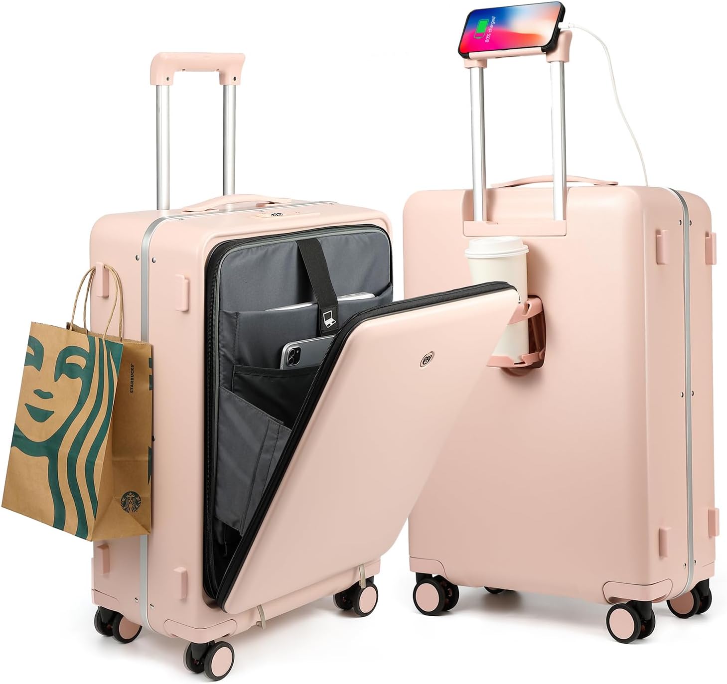 حقيبة سفر محمولة مزودة بجيب أمامي، وحجرة للكمبيوتر المحمول، ومنفذ USB، وحامل أكواب، وإطار من الألومنيوم، وقفل TSA، من Deepy (وردي، 20)